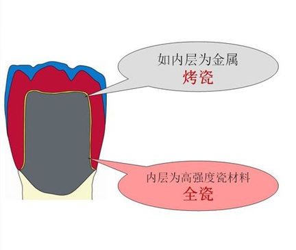 按照底层材料不同,可以分为全瓷冠和烤瓷冠:
