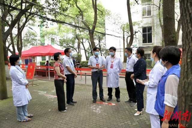 6月20日,湖南省卫生健康委副主任龙开超、医考中心主任易新娥等一行到考试基地巡考,实地察看了实践技能考试各个环节,详细了解医师资格实践技能考试组织实施等情况,对湘雅口腔医院在常态化疫情防控下,扎实组织好实践技能考试给予高度评价。湖南省卫健委医学考试中心督导高章峰考试期间全程督导、巡视,对考试的整体情况给予了充分肯定。