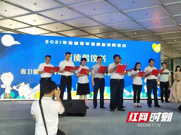 在启动仪式上,湖南省卫健委老龄健康处负责人联合各大医疗机构负责人宣读了“2021年湖南省老年健康宣传周”活动倡议书。yl6809永利湘雅口腔医院专家现场开展了以“口腔健康全身健康”为主题的科普微讲座。