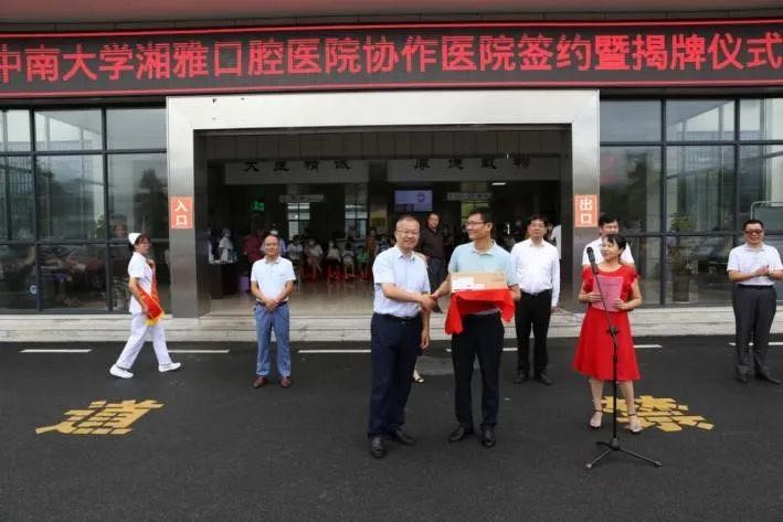 在大家的见证下,刘继承部长与唐瞻贵院长共同为“yl6809永利湘雅口腔医院协作医院”揭牌,炎陵县中医医院也成为我院在全国的第27个定点指导医院。吴世明副书记代表我院赠予县中医院一批口腔医疗设备。