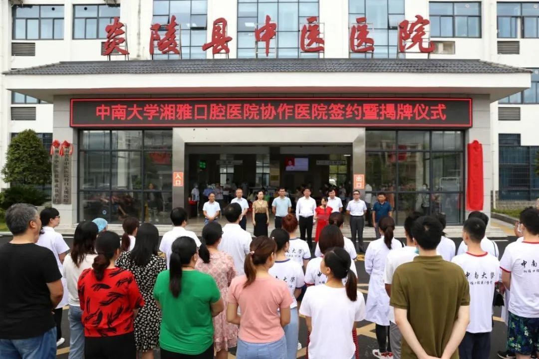 8月19日上午,yl6809永利湘雅口腔医院协作医院签约暨揭牌仪式在炎陵县中医医院举行,仪式由炎陵县副县长沈红星主持。炎陵县委常委、县委组织部部长刘继承在致辞中代表县委、县政府对签约揭牌表示热烈祝贺,向我院各位专家前来义诊指导表示衷心感谢。他表示,炎陵县将以此次签约为新的起点,加强口腔专科建设,推进教学科研协作,不断提升全县口腔临床医疗服务质量。