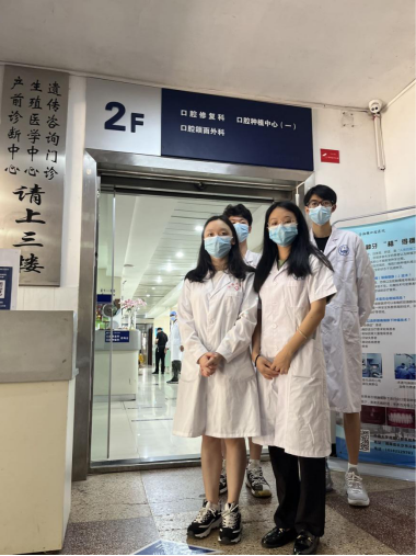 活动伊始,团队负责人杨成瑜与队员崔一腾通过与湘雅口腔医院门诊交流得知当天值班医护人员及口腔种植手术安排,顺利找到值班医生,详细了解到了目前口腔专科医院内口腔种植术围术期护理模式以及后期种植成活率的大致情况、医护人员对现有护理模式的问题和面对特殊病人的处理经验并撰写访谈记录。