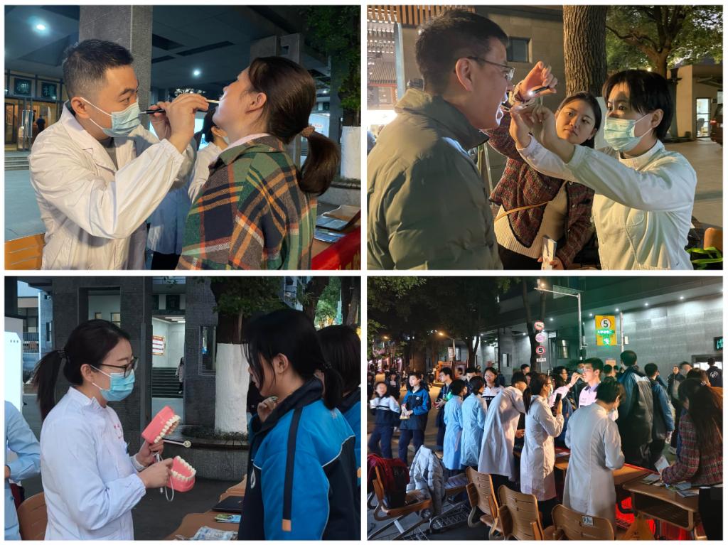 “医生,洗牙会让牙齿变松动么?”“拔智齿的最佳时期是什么时候?”“牙齿矫正应该什么时候去做?”宣教台吸引了众多师生前来咨询。活动现场,来自口腔预防科、口腔颌面外科、牙周科、口腔全科等学科的医护专家向师生们讲解了日常生活中的口腔卫生基础保健知识和口腔疾病预防措施,教学演示了巴氏刷牙法、牙线使用等技巧。针对同学们关心的龋齿治疗、拔智齿最佳时期、牙齿矫正等常见问题,专家们耐心解答,给出了指导性意见和建议,提倡减少高糖食品、饮料及碳酸饮料的摄入;警惕牙周炎,建议每年进行1至2次洁牙。口腔专家表示,《“健康中国2030”规划纲要》提出了以口腔健康为首的“三减三健”健康生活方式,强调口腔健康是全身健康的重要组成部分。口腔疾病一般进展缓慢,早期多无明显症状,因此不易察觉,需定期进行口腔健康检查,及时发现口腔疾病,及早治疗。呼吁个人要每天两次刷牙、定期口腔检查;家庭要督促孩子养成爱牙护齿良好生活习惯;学校可以定期开展健康宣教活动。