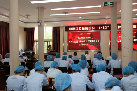 5月11日中午,我院召开纪念庆祝“5·12”国际护士节暨表彰大会。全体院领导出席会议并为优秀护士长、优秀护士和“天使之歌”摄影比赛优秀作品颁发荣誉证书。会上,特别表扬了我院出征“健康中国科普先行护理健康科普能力大赛”的护理团队,她们凭借独特的创意和优秀的作品拿下了特等奖的荣誉,为口腔健康科普贡献湘雅力量。大家欣赏了临床科室护理团队风采展示,图文并茂、有声有色的视频充分展示了我院白衣天使们美丽大方的仪表、充满热情的精神风貌、积极向上的工作态度。院领导也向全院护理工作者送上节日的问候和诚挚的祝福,希望全院的护理兄弟姐妹们不忘初心,与医院携手共同开创更好的明天。