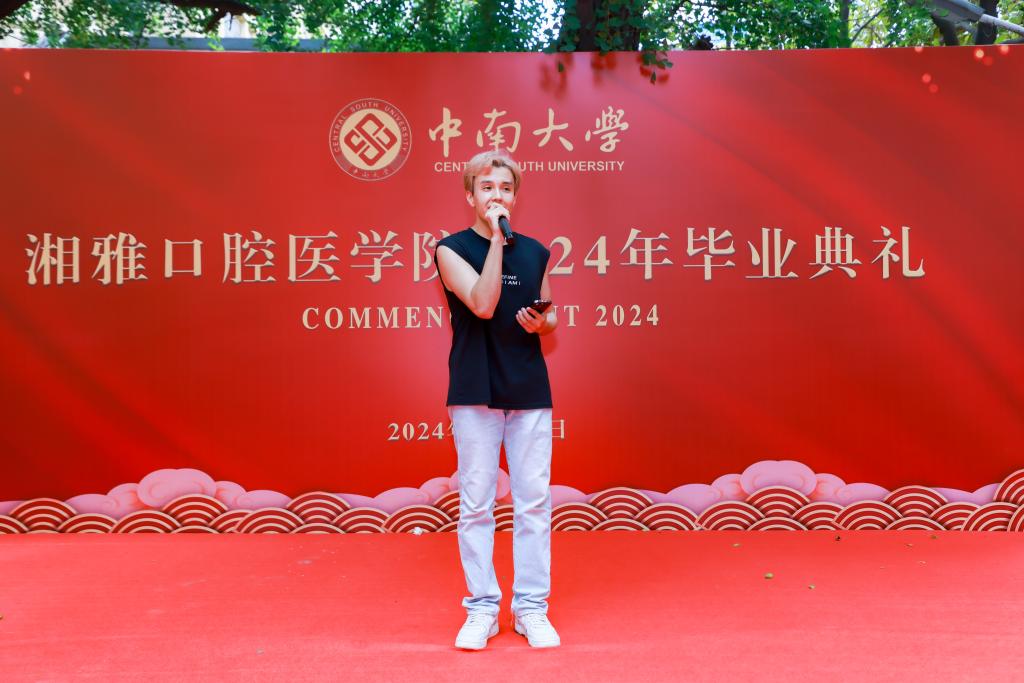 口腔医学(5+3)1902班的全铭轩在毕业生代表发言中,深情回顾了5年来的求学之路和校园生活难忘点滴,祝愿每一位毕业生在未来的人生旅途中,都能收获丰硕的成果,实现自己的理想!他号召大家肩负起更加重要的责任,“让我们成为维护人们口腔健康的守护者,让我们的手成为治愈疾病的神奇之手,让我们的知识成为传播健康理念的基石,为国家医疗卫生事业的发展贡献一份属于湘雅口腔的力量。”