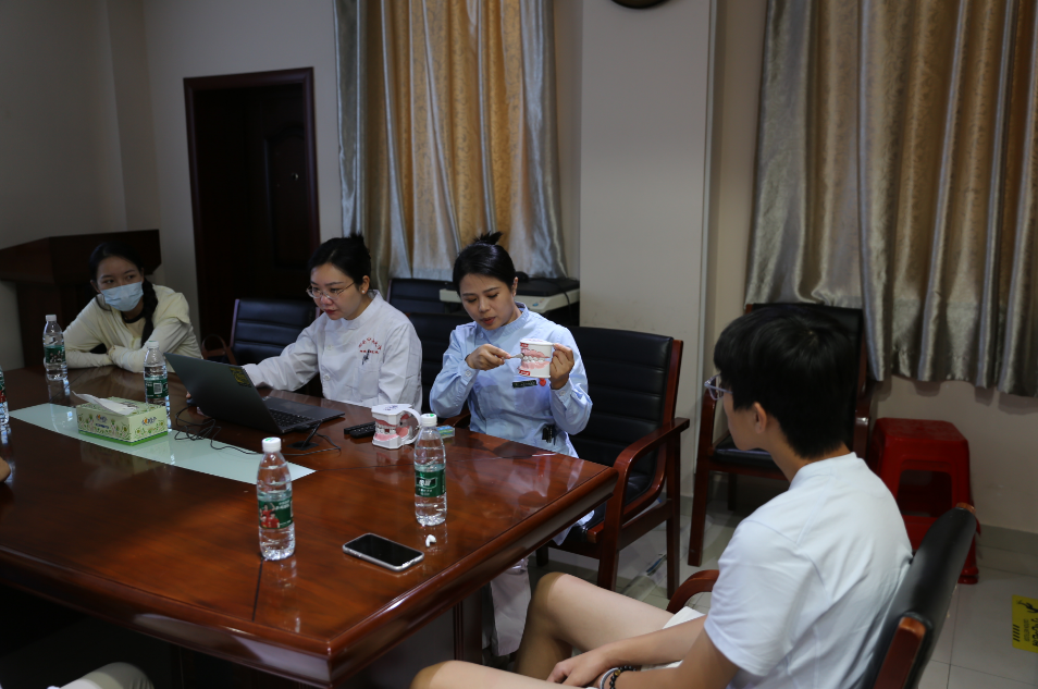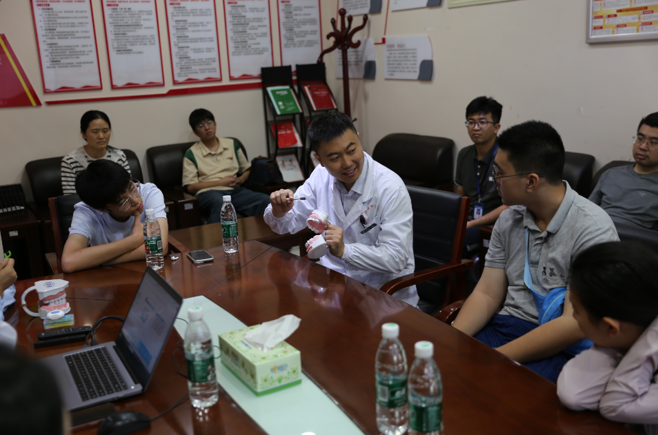 7月22日上午,王松灵院士专家工作站迎来一群北京的同学,开展了爱牙护齿研学活动,我院儿童口腔科李磊涛、徐丽、张丹老师及科教部成员和同学们一起互动交流,普及口腔健康知识,提高爱牙护齿意识,养成良好的口腔卫生习惯。