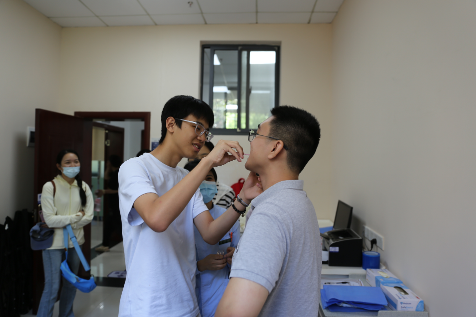 在“趣味实践”环节,同学们在徐丽老师的指导下,学习并进行了口腔一般检查以及牙菌斑指示剂的使用,深入了解了口腔检查的手段和过程,沉浸式的体验正确的刷牙方式对口腔健康的影响。实践环节结束后,老师们为参与研学的同学颁发了研学证书。