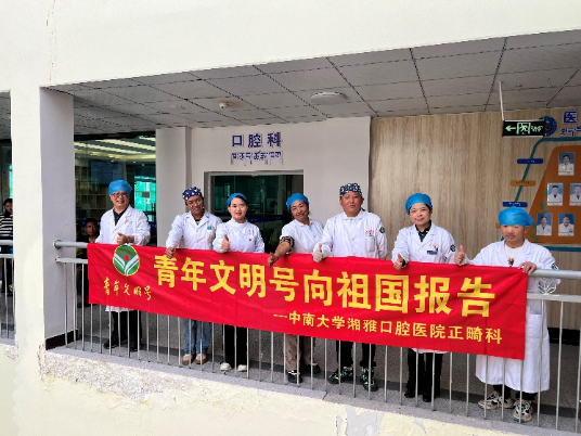 高举团旗跟党走,挺膺担当勇争先。我院将始终践行“一切为了人民生命健康”理念,引导广大青年发挥示范作用,以青春之名扬奋斗风采、担时代之责,积极在偏远地区开展义诊、健康科普等各类公益活动,将关爱和温暖送到有需要的人民群众身边,更好地为百姓的口腔健康保驾护航。