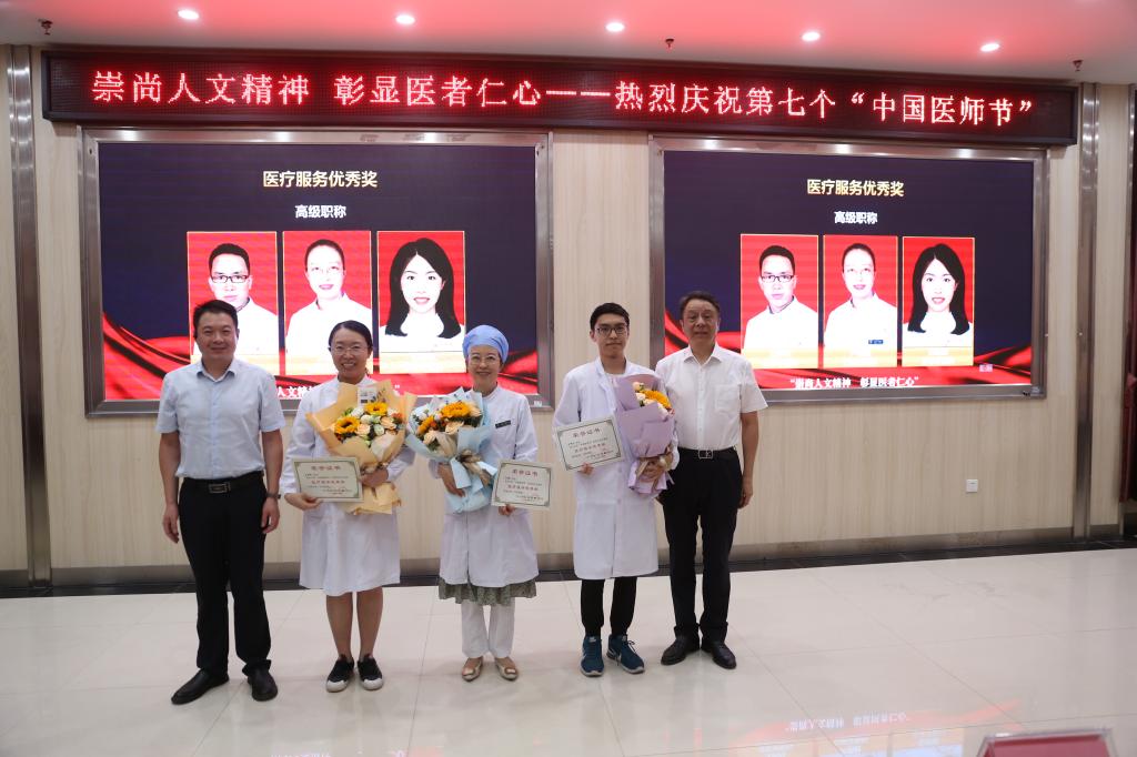 随后,李昆副院长宣读表彰决定,全体院领导班子成员出席并为获奖人员颁奖。优秀医师李成日发表获奖感言,表达了自己继续弘扬崇高职业精神,与党同心、与党同行,切实担负起推进健康中国建设、保障人民健康的神圣使命的决心。