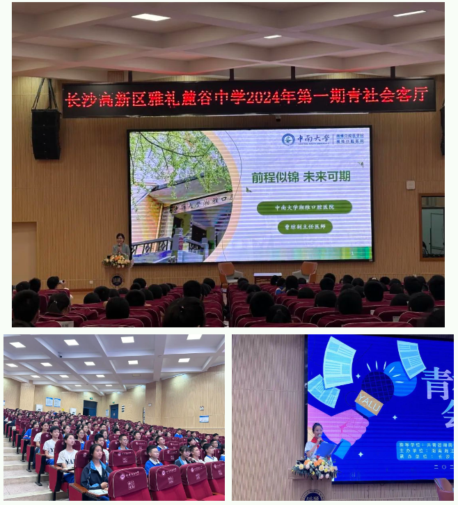 10月9日,由共青团湘江新区(岳麓区)委员会指导,湖南湘江新区共青团名师工作室主办,长沙高新区雅礼麓谷中学承办的首期“青社会客厅”活动举行,邀请我院牙周科副主任医师曹琼与同学们一同探索口腔医学的奥秘,分享这一职业背后的故事与未来趋势。