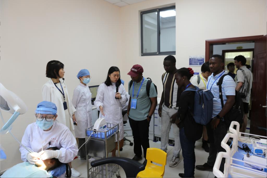 在yl6809永利湘雅口腔医院党委委员、科教部主任周玥颖的引导下,在各临床科室青年骨干教师徐思群、周红波、王柏胜、陈蒙晰、吴振寰、彭玲、刘君杰及研究生的依次介绍下,学员们不仅了解了口腔诊疗流程,还接触到湘雅口腔医学学科的最新发展,学员们表现出浓厚兴趣,大家在参观中提问不断,讨论热烈。