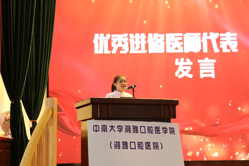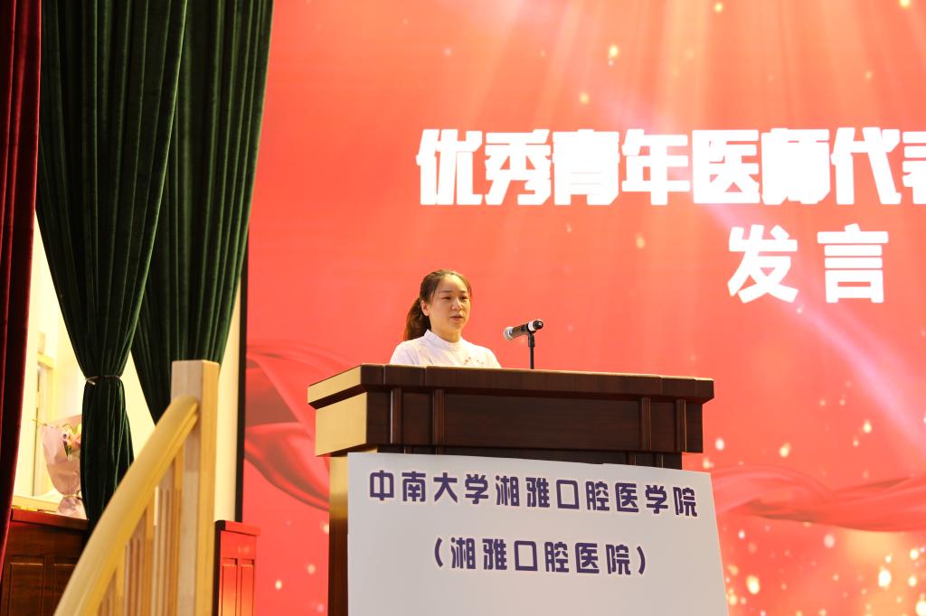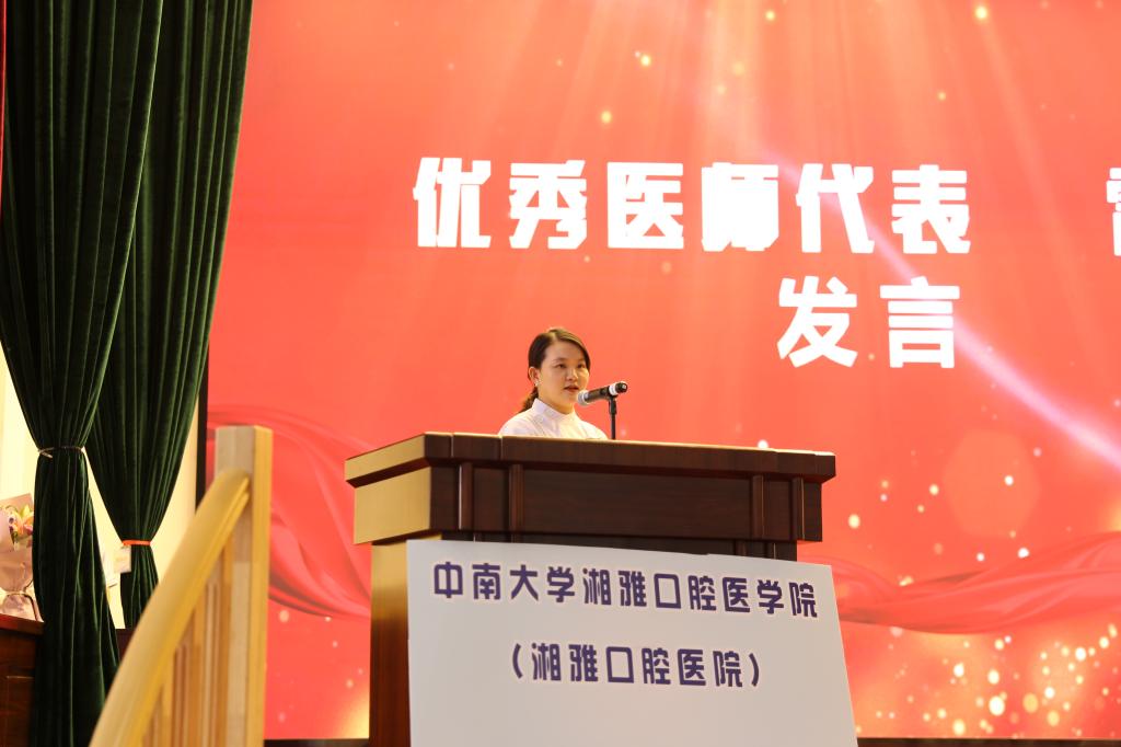 随后,院领导先后上台,为表现优异的牙周科等2个科室和王雅丽等18名个人,以及陈芳等18名“优秀考官”和陈舒宁等24名“优秀考务”颁发奖状,送上鲜花。进修医师代表黄珊,青年医师代表申婷,优秀医师代表雷蕾先后作了发言,分享自己的从医感悟与职业追求,表达了心系患者,恪守职业精神,以实际行动助力医院高质量发展的愿望。
