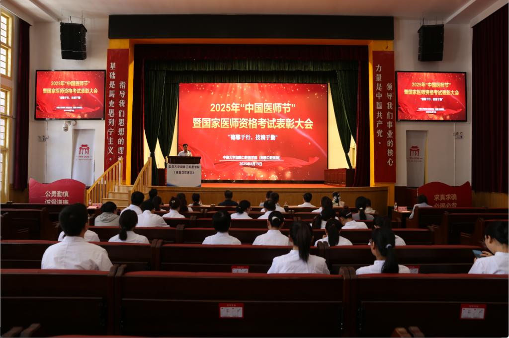 8月19日是中国医师节,今年医师节主题是“德馨于行,技精于勤”。当天中午,我院在福庆礼堂举行2025年“中国医师节”暨国家医师资格考试表彰大会,院领导班子与医师代表们齐聚一堂,共同致敬医者初心,营造尊医重卫的良好氛围。大会由刘斌杰副院长主持。