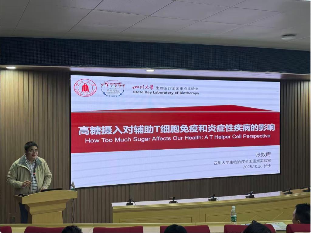 10月28日下午,四川大学生物治疗全国重点实验室张敦房教授应邀做客湘雅口腔医学讲坛,为师生们带来了一场题为《高糖摄入对辅助T细胞免疫和炎症性疾病的影响》的专题学术报告。学术报告由刘欧胜院长主持。