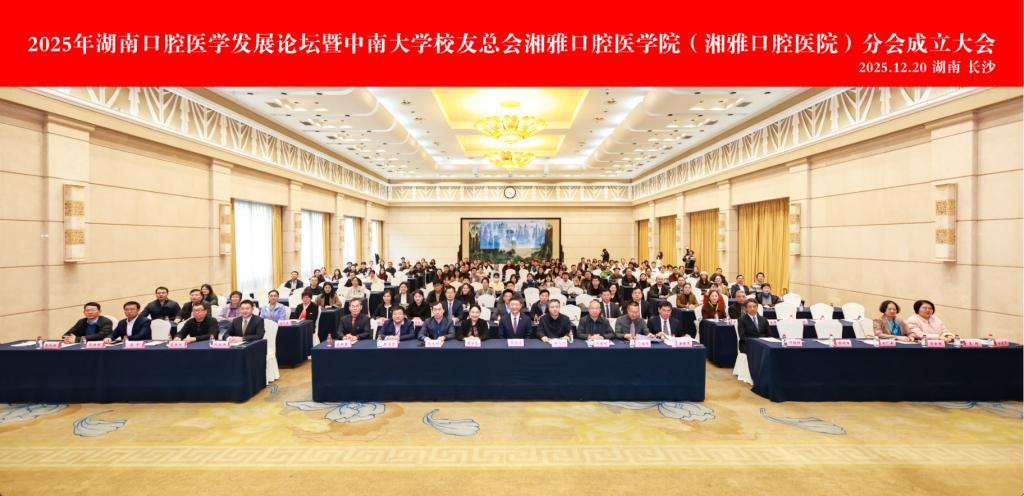 12月19日至20日,2025年湖南口腔医学发展论坛暨yl6809永利校友总会湘雅口腔医学院(湘雅口腔医院)分会成立大会在长沙召开,2025年湖南省口腔健康促进会学术年会、湖南省医师协会口腔医师分会学术会议、湖南省医学教育科技学会口腔医学教育专委会学术年会、湖南省口腔医学会牙周病学专业委员会学术年会同期召开。本次年会以凝聚校友力量、共话学科发展之名,邀请了国内口腔医学领域专家学者和广大校友相聚一堂,就口腔基础研究、临床应用、科技创新、教育教学等多个方面进行深入的探讨和交流,旨在共同推动湖南省口腔医学学科发展和提升口腔医学医疗服务水平。
