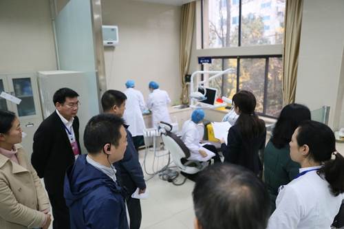 12月3日上午,由国家医学考试中心杨芳丽主任、北京大学口腔医院蔡志刚教授、武汉大学口腔医学院黄翠教授等组成的专家组在省卫健委考试中心领导陪同下莅临我院,对我院申报的国家医师资格实践技能考试基地开展实地评估考察工作。