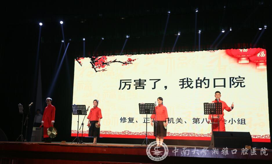 紧接着,修复科、种植中心、正畸科、放射科、病理科、住培办和机关的老师们联袂演出三句半——《厉害了,我的口院》,引发全场笑声不断。