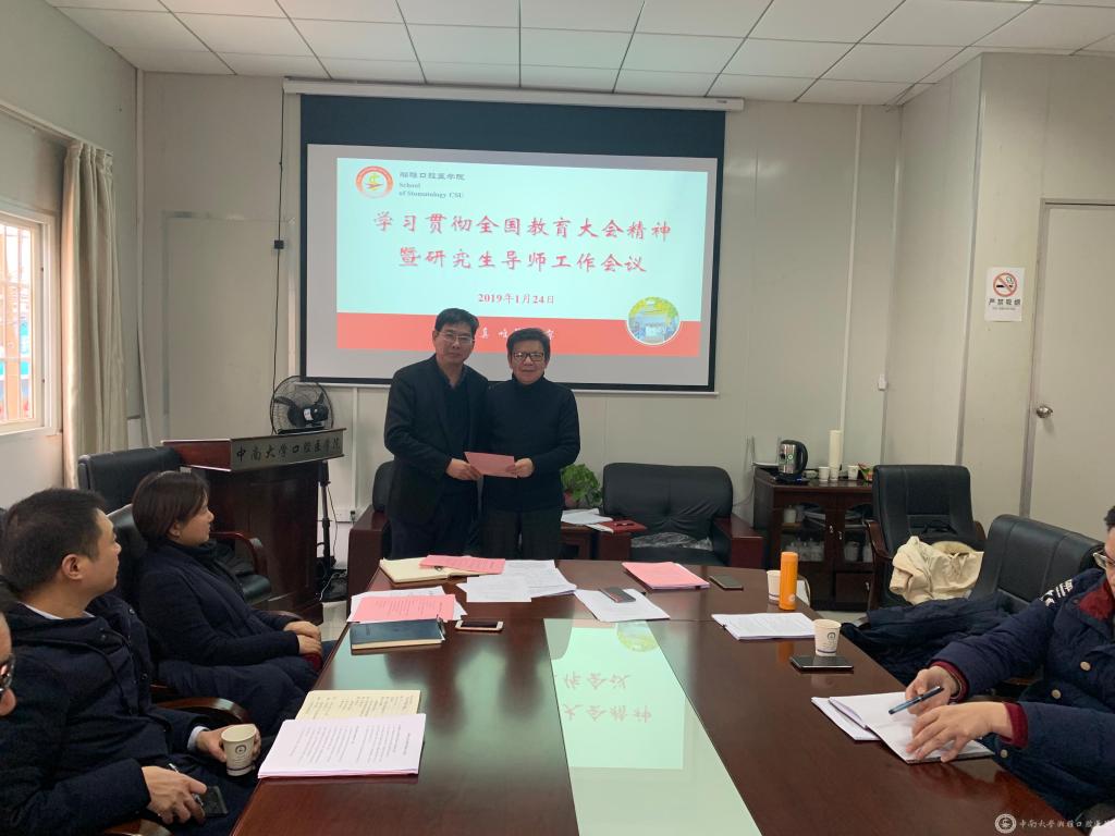 1月24日午休时间,我院组织召开贯彻落实全国教育大会精神暨研究生导师工作会议,进一步推进研究生导师第一责任人责任落实。全体院领导出席了会议,在院全体研究生导师、研究生管理部门负责人参加了会议。会议由院党委副书记吴世明主持。