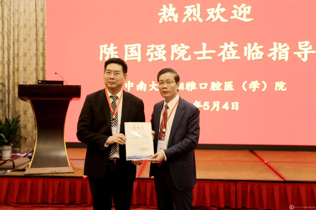 讲座结束后,唐瞻贵院长为陈国强院士颁发了感谢状,并在讲话中指出,我院正处于创业阶段,陈国强院士此次报告对指导我们加快学院建设和学科发展很有启发和帮助。希望全体教职员工认真领会报告的精髓,抓住机遇,坚定信心,凝心聚力,迎接挑战。