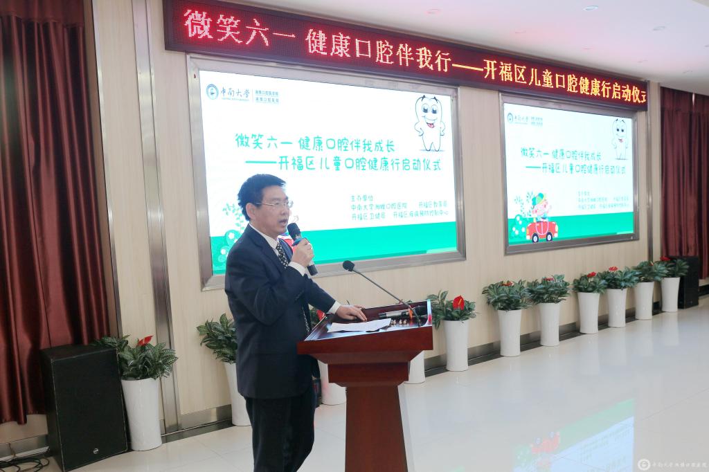 5月29日下午,该项目启动仪式在我院门诊二栋四楼报告厅举行,来自开福区的百余名师生代表参加了活动。唐瞻贵院长在致辞中表示,口腔健康是全身健康的重要组成部分,对于儿童而言,口腔健康更关系到身体发育和形象自信,我院在六一国际儿童节到来之际,开展本次儿童口腔健康行公益活动,让国家窝沟封闭等项目在开福区得以落地,就是为了使全区的孩子们拥有健康的口齿,更加快乐地学习成长。