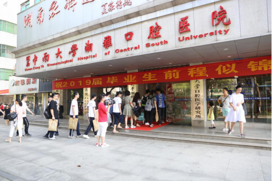 早上8时许,毕业生组队从学生公寓出发,沿着湘雅路到达湘雅口腔医院,沿着红毯经过门诊一栋、二栋,重走求学之路。学院精心为毕业生们准备了签名墙和纪念板,同学们在银杏树下拍照留念、互赠祝福。全体院领导、研究生导师也来到银杏树下,与毕业生话别并合影留念。