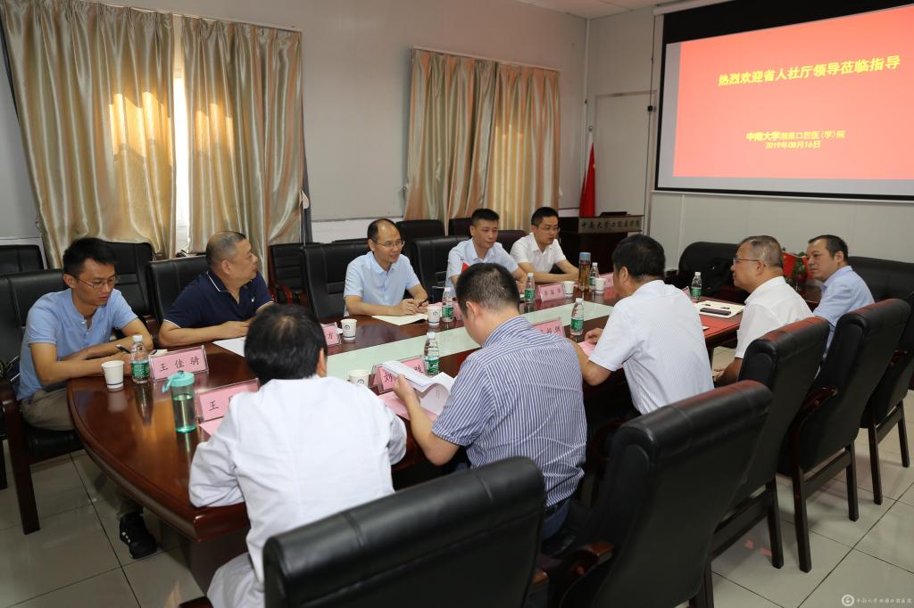8月16日,湖南省人社厅副巡视员丁兴发、人力资源流动管理处处长马一方、副处长李振华等来院调研,实地了解我院人力资源现状及提升需求,带来了政府对用人单位的关心和支持。院党委书记邓超纲、党委副书记吴世明、副院长刘欧胜、人力资源部主任刘良奎、科研部主任王月红及相关部门人员参加会议。