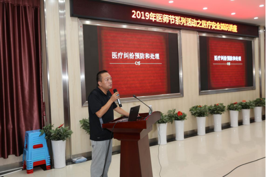 宋冬春主任以典型案例引出讲座,从告知及知情同意、病历书写存在的问题、正确开具医学证明书等方面,全面讲解了医疗质量安全知识,深入浅出,内容充实,结合实际案例从理论知识和道德层面深度剖析,让广大医务人员受益匪浅。周轶科律师从不良事件、医疗纠纷等方面深层次分析了医院医疗安全问题,并对医院医护人员提出建议:严格执行核心制度及医院相关制度,提高医疗质量,防范医疗隐患;医护人员要加强业务学习,提高法律意识,不断充实自己。