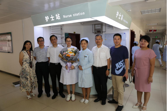 8月19日,“中国医师节”当天上午,院党委邓超纲书记、院长唐瞻贵带领院领导及行政职能部门负责人在门诊二栋中国医师节“感恩医路有你”主题活动祝福墙上写下寄语,随后走访慰问了我院各临床科室、医技辅助科室及住院部,向奋战在一线的医师送上鲜花和节日的祝福。每到一各科室,院领导与医师亲切握手,询问近期工作情况,叮嘱他们积极践行医者神圣使命,要劳逸结合,保重身体。