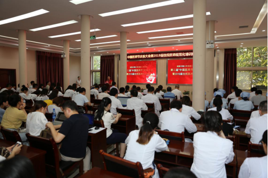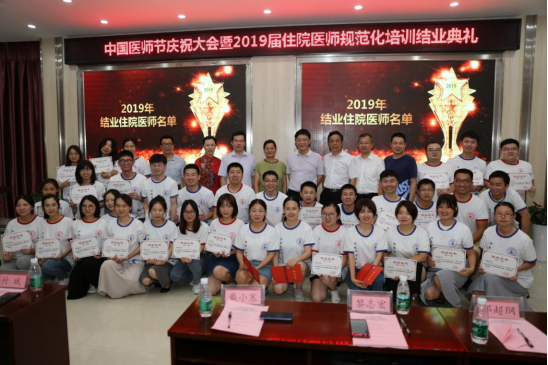8月19日晚上,我院在门诊二栋四楼学术报告厅举行“第二届‘中国医师节’庆祝大会暨2019届住院医师规范化培训结业典礼”,对在中国医师节评优活动中获奖的集体和个人进行了表彰,为2019届住院医师规范化培训结业学员颁发了结业证书,并赠送了书籍。