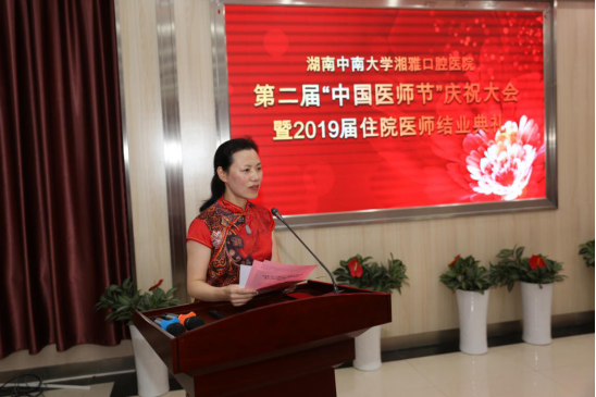 黎志宏处长指出,湘雅口腔医院在住院医师规范化培训工作上做出的努力是有目共睹的,将结业典礼特意安排在中国医师节举行,充分体现了医院对规培工作的重视。他希望全体结业住培学员始终秉承医师精神,发扬“敬佑生命、救死扶伤、甘于奉献、大爱无疆”的精神,将湘雅口腔医院教授的知识和技能用到服务和奉献社会中去,以高尚的医德医风为实现作为医师的职业理想保驾护航。