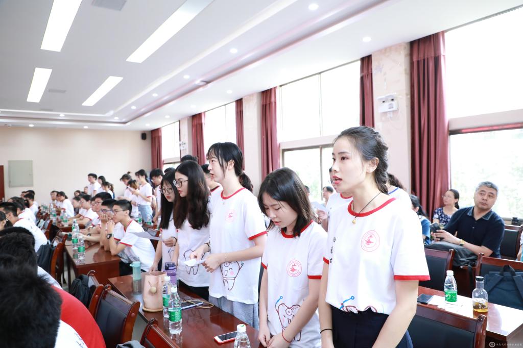 “健康所系,性命相托。当我步入神圣医学学府的时刻,谨庄严宣誓:我志愿献身医学,热爱祖国,忠于人民,恪守医德,尊师守纪……”全体新生在口腔正畸科卢燕勤老师的带领下庄严宣誓,承诺为祖国医药卫生事业发展和人类身心健康奋斗终生。
