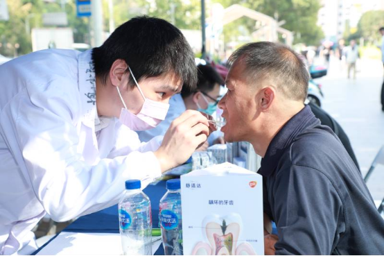 9月19日下午及晚上,我院修复科、种植科主任周红波带领志愿者团队在开福区华创广场为周边社区居民及流动人口进行免费的口腔检查、咨询并发放口腔保健宣传资料。除此之外,志愿者还为来到现场的群众免费发放牙膏、假牙清洁片、进行免费的牙齿敏感性测试及科普假牙清洁片的正确使用方式。