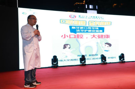9月19日晚,我院在开福区华创广场主办的2019年“9.20”全国爱牙日大型宣教活动吸引了五百余名观众的参与。此次活动由开福区卫生健康局、伍家岭街道办事处统筹协调,开福区疾病预防控制中心和伍家岭社区卫生服务中心联合协办。