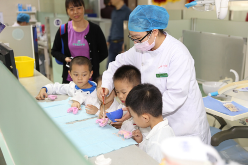 9月19日~ 9月25日上午,省委机关新湘幼儿园大班孩子及家长来我院参加“我是小牙医”活动。在工作人员的带领下,孩子及家长首先参观了医院各科室,了解了医院各科室的功能,随后进行了两人一组的小牙医体验,孩子们在牙椅上由医生指导相互检查牙齿,并且制作牙齿模型。体验完小牙医,每组的带教医生为孩子及家长进行了口腔卫生宣教、免费口腔检查及口腔健康咨询。