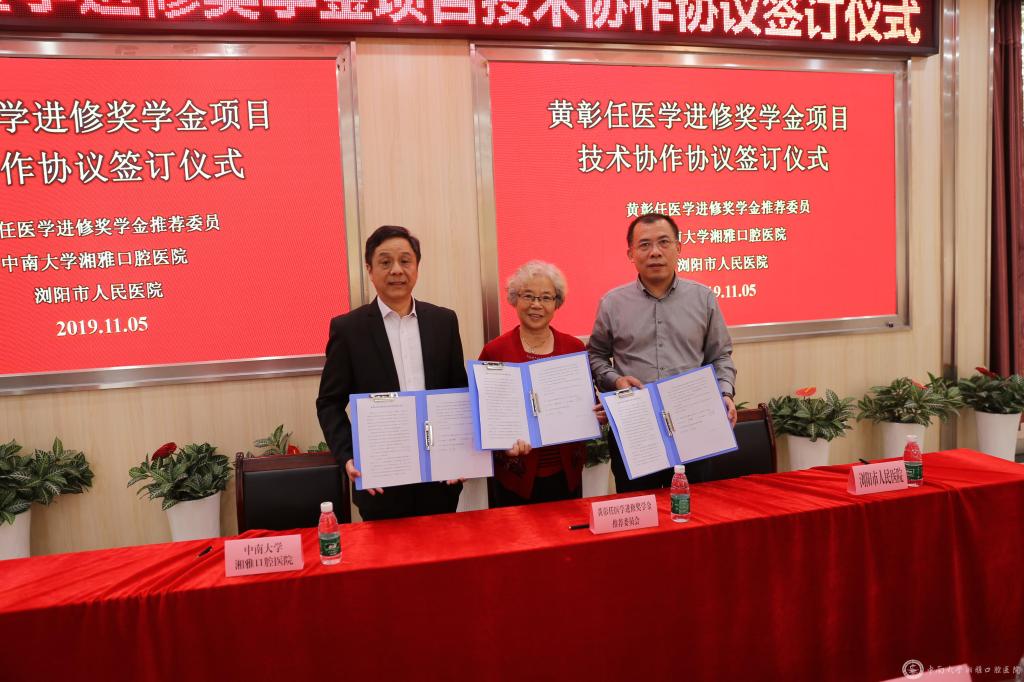 11月5日,yl6809永利湘雅口腔医院与浏阳市人民医院、黄彰任医学进修奖学金推荐委员会共同签订黄彰任医学进修奖学金项目技术协作协议。协议的签订旨在建立湘雅口腔医院与浏阳市人民医院、黄彰任奖学金推荐委员会的长期协作机制,为更多优秀中青年医生搭建发展平台,从而实现共同发展、互利共赢。