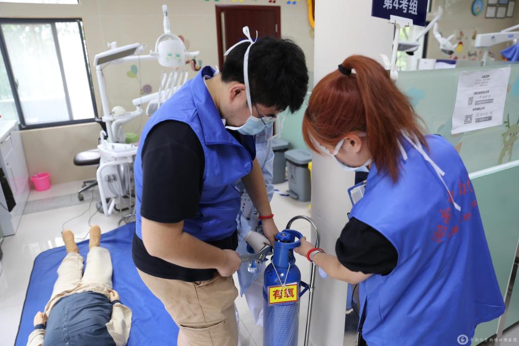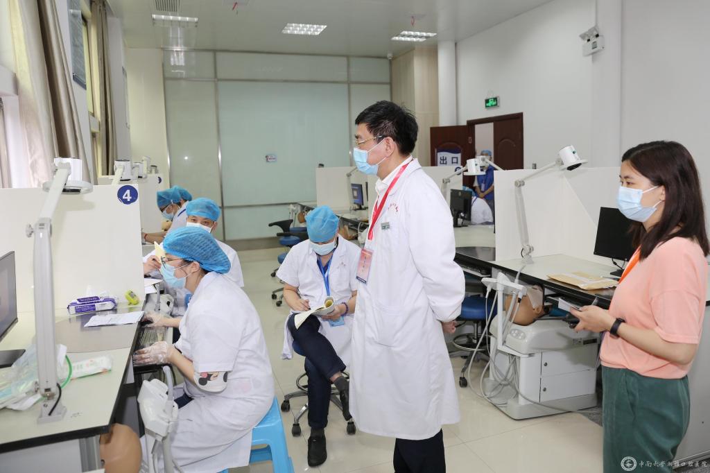 按照国家医考委统一部署,今年湖南考区全面执行医考改革政策,作为湖南省唯一的“国家医师资格考试(口腔类别)实践技能考试与考官培训基地”,我院严格贯彻考试工作的新政策、新变化、新要求,认真落实“国家基地考试、考生统筹分配、考官统一调配、考前两级培训、考区驻点指导、后勤服务保障、考官执考评价、成绩统一发布”考务工作八项新机制,严格做好常态化疫情防控工作,考前结合实际情况,按照优化资源、规范流程、统一标准的原则设置标准化考站,考中严格考风考纪,考场秩序良好,确保国家医师资格考试实践技能考试顺利进行。