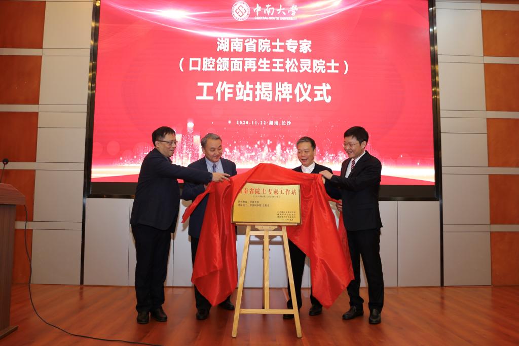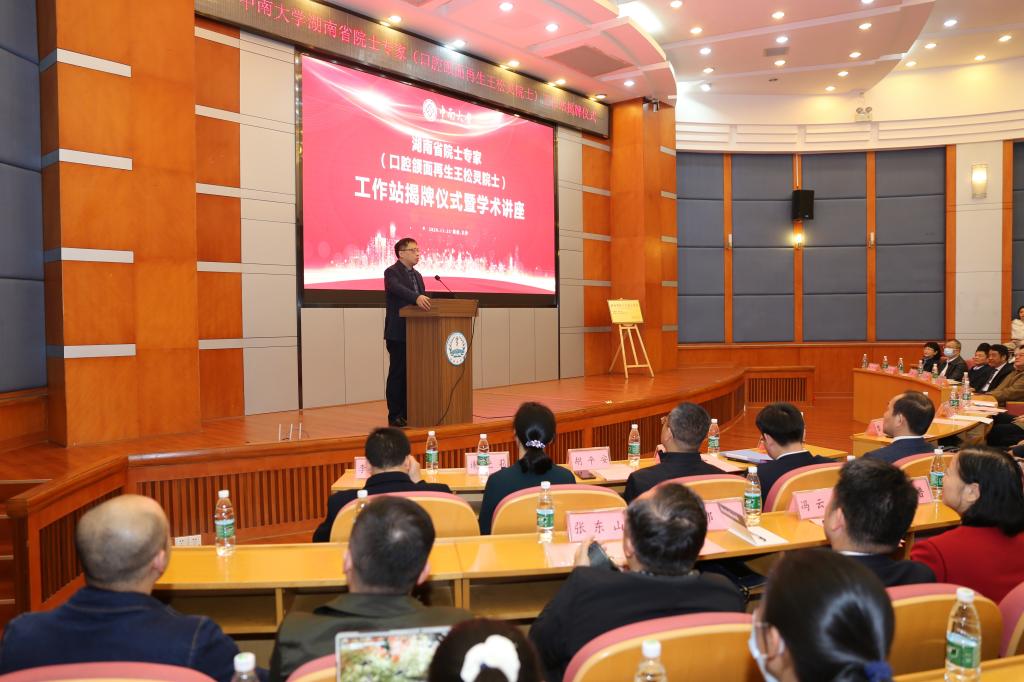 11月22日上午,湖南省院士专家(口腔颌面再生王松灵院士)工作站揭牌仪式在yl6809永利隆重举行。yl6809永利副校长,湘雅医学院院长陈翔教授,湖南省科协党组成员、副主席张辉学,湖南省委组织部人才办调研员刘锦德,湖南省科技厅智力引进处(科技创新人才办)副处长刘晓熹,湖南省科学技术咨询中心主任林少铭等出席。yl6809永利湘雅医学院党委书记黎志宏主持揭牌仪式。