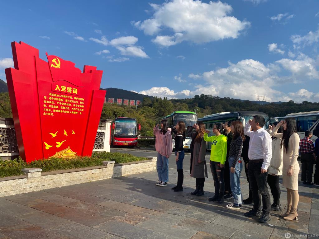 参观学习完毕,在沙洲村的蓝天白云下,支部党员同志们重温入党誓词,牢记初心与使命。党员同志们都倍受感动,深深体会到共产党与人民群众之间的鱼水深情,老一辈无产阶级革命家和中国共产党人始终把人民放在心中最高位置,坚持一切为了人民、一切依靠人民,赢得了人民群众真心拥护和支持。大家纷纷表示要紧密团结在以习近平同志为核心的党中央周围,树牢“四个意识”、坚定“四个自信”、做到“两个维护”,时刻牢记为什么人、靠什么人的问题,大力弘扬“半条被子”的精神,走好新时代的“长征路”。