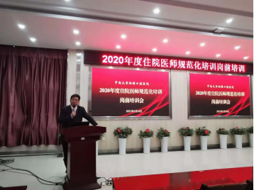 开班典礼暨岗前培训由谢晓莉副院长主持,各专业基地代表、医务部住培办及2020级全体住院医师参加。