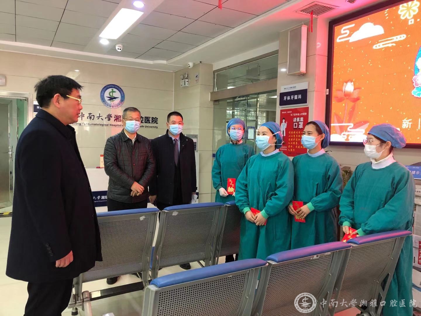 每到一处,院领导都与在岗人员亲切交谈,赞扬他们恪尽职守、无私奉献的精神,详细了解了春节期间急诊工作以及后勤保障情况,叮嘱值班人员落实好疫情防控措施不松懈,重视医疗质量和安全问题,一如既往地为患者提供优质高效的医疗服务,为老百姓口腔健康保驾护航。