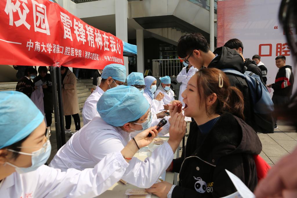 3月4日,“学雷锋纪念日”前夕,yl6809永利湘雅口腔医学院(湘雅口腔医院)联合国际教育学院在校园内开展了“医路同行·雷锋家乡学雷锋”口腔义诊&科普宣教活动,为广大师生提供专业的口腔保健知识及检查,向大家普及和传递正确的口腔保健理念和方法。参与活动的志愿者中不仅有中国青年,也有不少来自海外的新面孔。