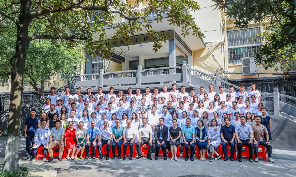 典礼结束后,领导、老师、同学和家长在口腔医院门诊二栋门口合影,随后同学们由工作人员引领参观了医院的各个科室。