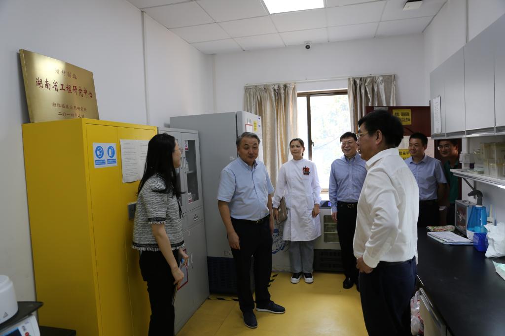 随后,王松灵院士团队一行前往落户我院的院士专家工作站,参观指导了我院科研平台建设。在现场,王松灵院士与我院科研团队深入交流,在听取口腔黏膜下纤维化(OSF)发生起源以及机制的研究现状以及课题研究进展的相关汇报后,他给出了指导意见并鼓励大家再接再厉,争取新的突破。