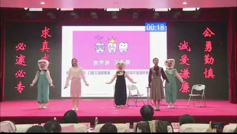 各参赛团队紧紧围绕主题,借助精美的PPT、各种道具和背景视频,从各种别出心裁的切入点,通过口头讲授、歌舞小品、情景模拟、动作示范等方式妙趣横生地为大家呈现了一场健康科普盛宴。经过紧张角逐,我院胡仕芬,易慧娟,戴梦平,章艳,黄丹凭借舞台剧《金牌调解之智齿的那些事》,以维妙维肖的情景演绎和讲述荣获舞台剧组二等奖,通过舞台剧形式,生动、形象、科学的阐释了“哪些智齿需要拔除”“智齿发炎又是怎么回事”等大众普遍关心的口腔问题。