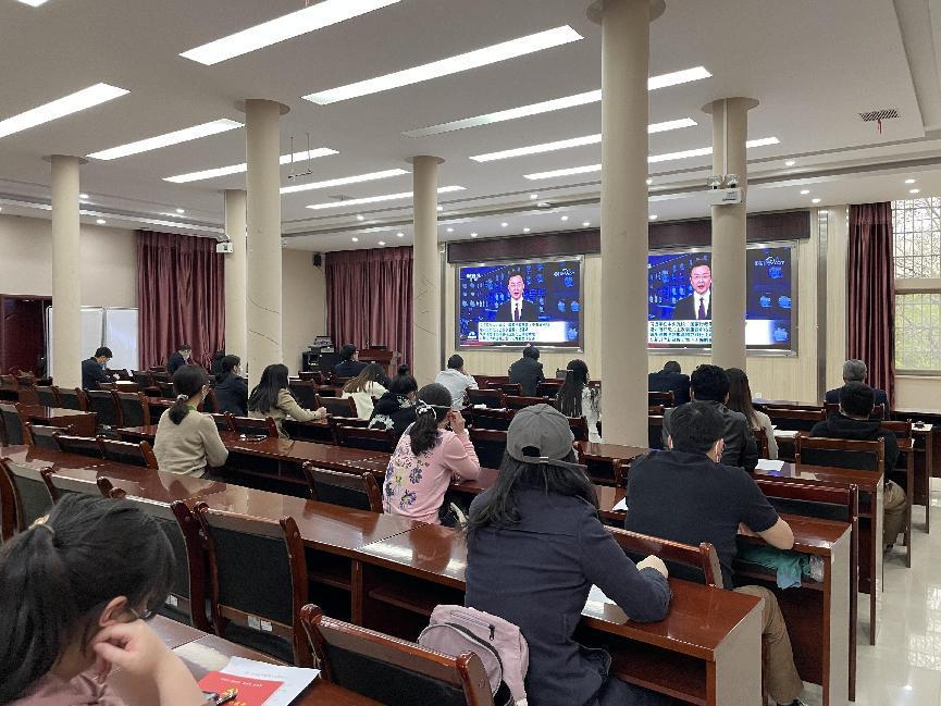 会上,全体与会成员观看视频学习了习近平在中央党校(国家行政学院)中青年干部培训班开班式上发表重要讲话精神。第一党支部组织委员卿泽洋进行主题发言,介绍了第一党支部在疫情之下如何做好党建工作的规划,并分享了党费收缴等组织工作经验。