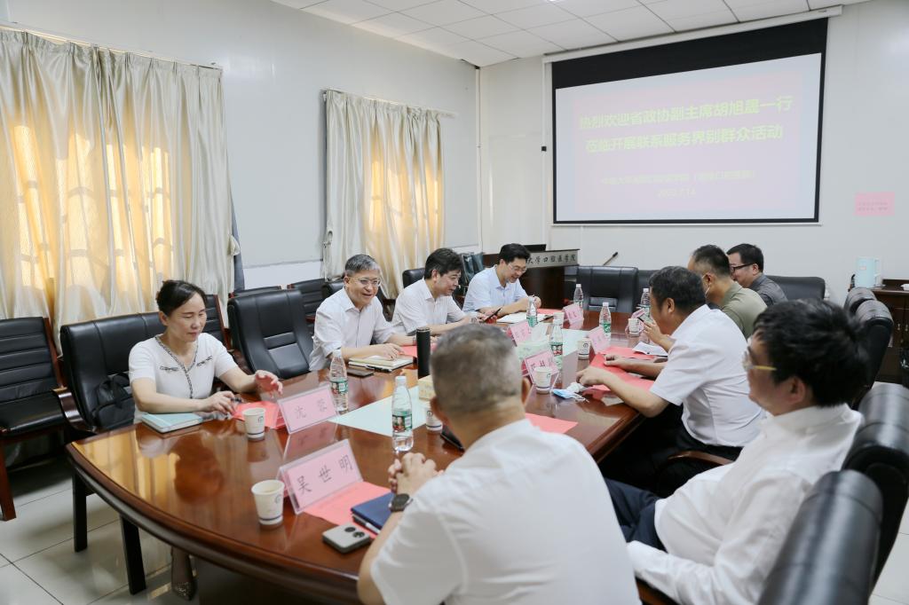 7月14日,全国政协委员、省政协副主席、致公党省委会主委胡旭晟来我院开展联系服务界别群众活动,走访联系服务的致公党员王月红,并在我院调研。