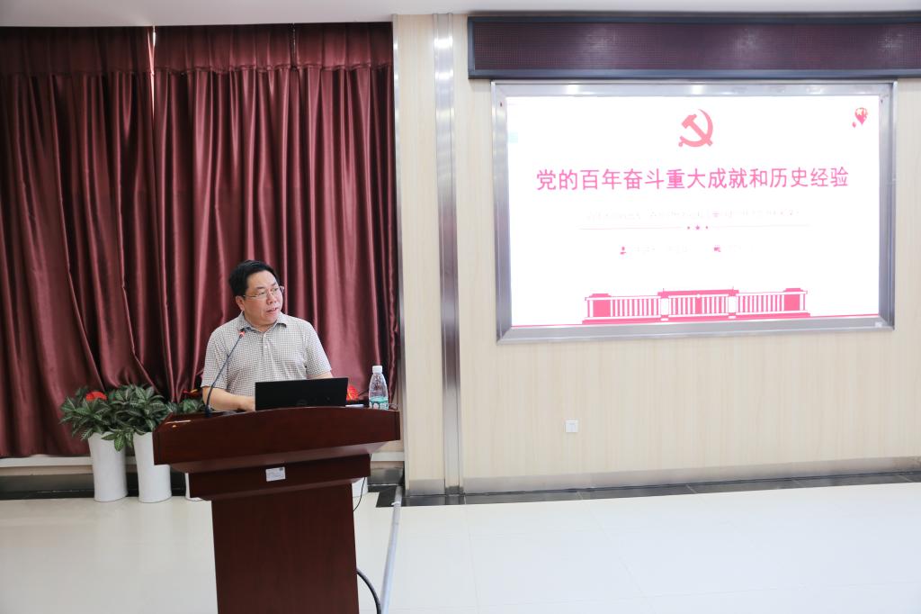 陈立章副校长从党的十九届六中全会背景、精神实质、重大意义与三个历史决议的内在关系、党百年奋斗经验的内在逻辑等方面全方位宣讲十九届六中全会精神,重点就《中共中央关于党的百年奋斗重大成就和历史经验的决议》进行了解读,让参加学习的党员对党的百年奋斗重大成就和历史经验有了新的理解和认识。