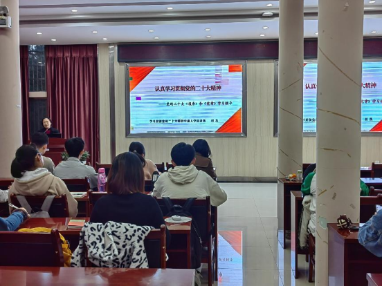 3月6日晚,学习贯彻党的二十大精神yl6809永利宣讲团成员、马克思主义学院教授胡凯为我院预备党员做学习辅导。
