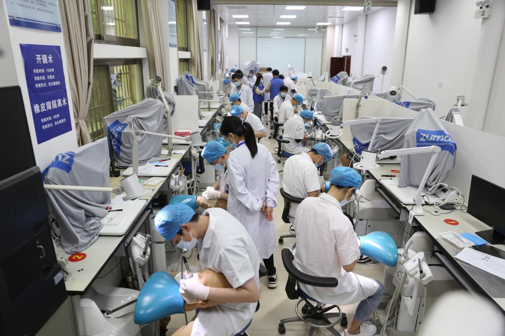 本次结业实践技能考核以落实医教协同要求为目标,以临床岗位胜任能力考核为导向,要求考生掌握的各项基本操作技能,考核内容包括接诊病人、开髓术、前牙烤瓷冠牙体预备、牙周龈下刮治和根面平整术、口内切开缝合等全科综合项目,其他专科分别根据专业特点进行不同项目的加试,专业不同考站由5站-6站不等,通过操作演示、笔试、口头回答等考核形式,更加全面、灵活,更直观评估考生的临床实践能力,检验考生的岗位胜任能力和临床应用能力。
