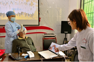 宣讲后,正畸科护理团队对现场的志愿者居民朋友进行了口腔扫描,配合医生的讲解,居民朋友直观的了解了自己的口腔健康状况。口腔正畸科易芳医生、易桥医生和曾芳护士长带领的正畸医护团队和口腔修复科王月红主任带领的医生团队对现场的居民朋友进行了口腔义诊。
